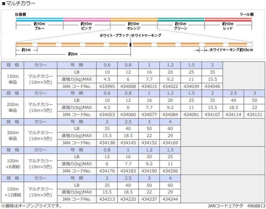マルチカラータイプを選べば、10m×5色の色分けで水深もしっかり把握でき、実戦でも十分すぎるスペックを発揮します。