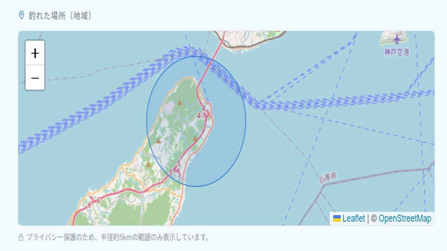 - 釣り場は半径5km円でぼかして公開、本人にしか正確な位置は見えない
