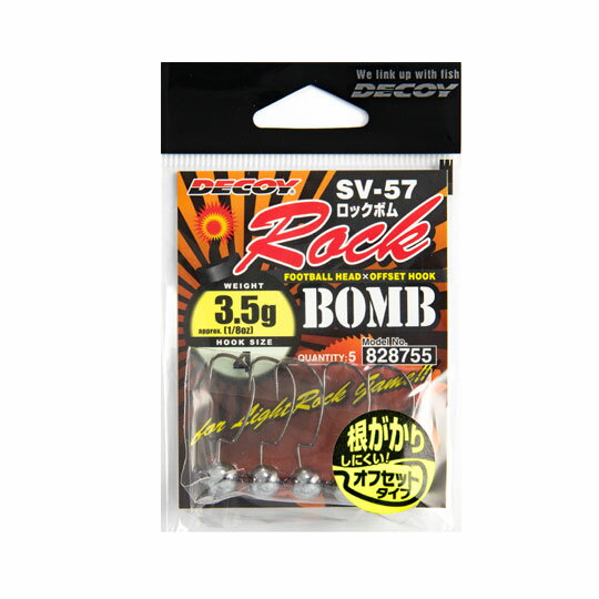 4つ目のカサゴにおすすめなジグヘッドは、フットボール型ヘッドとオフセットフックを融合させた最強の根魚専用モデル、カツイチの「ロックボム SV-57」です。