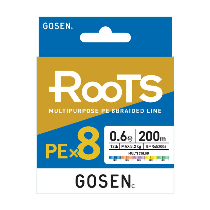 ルーツ PE×8」は、ゴーセン独自の技術で、高強度、高感度、高耐摩耗性を実現した8本編みPEライン。
